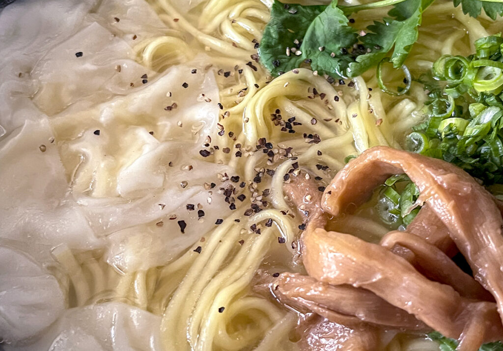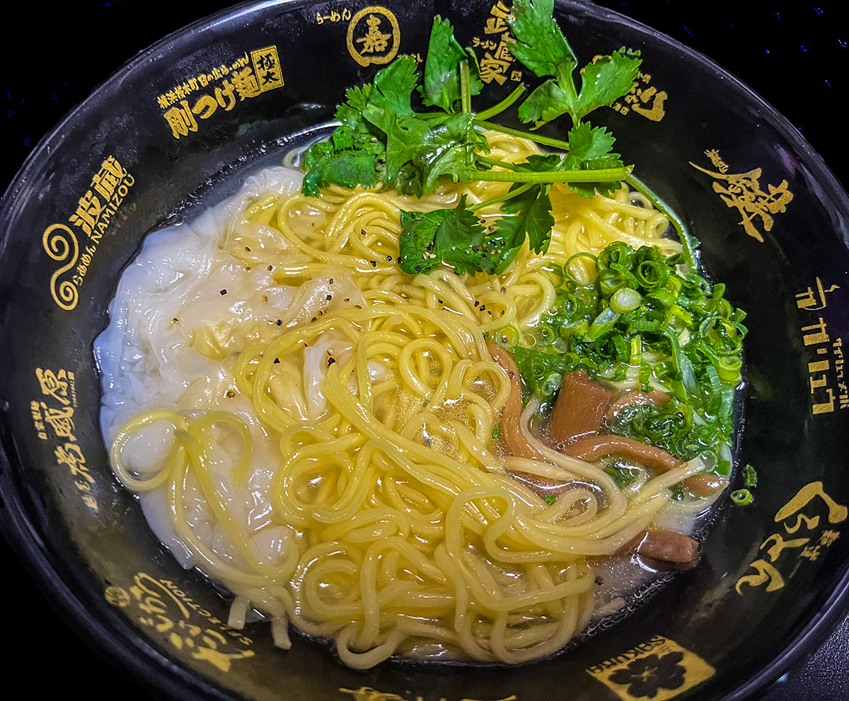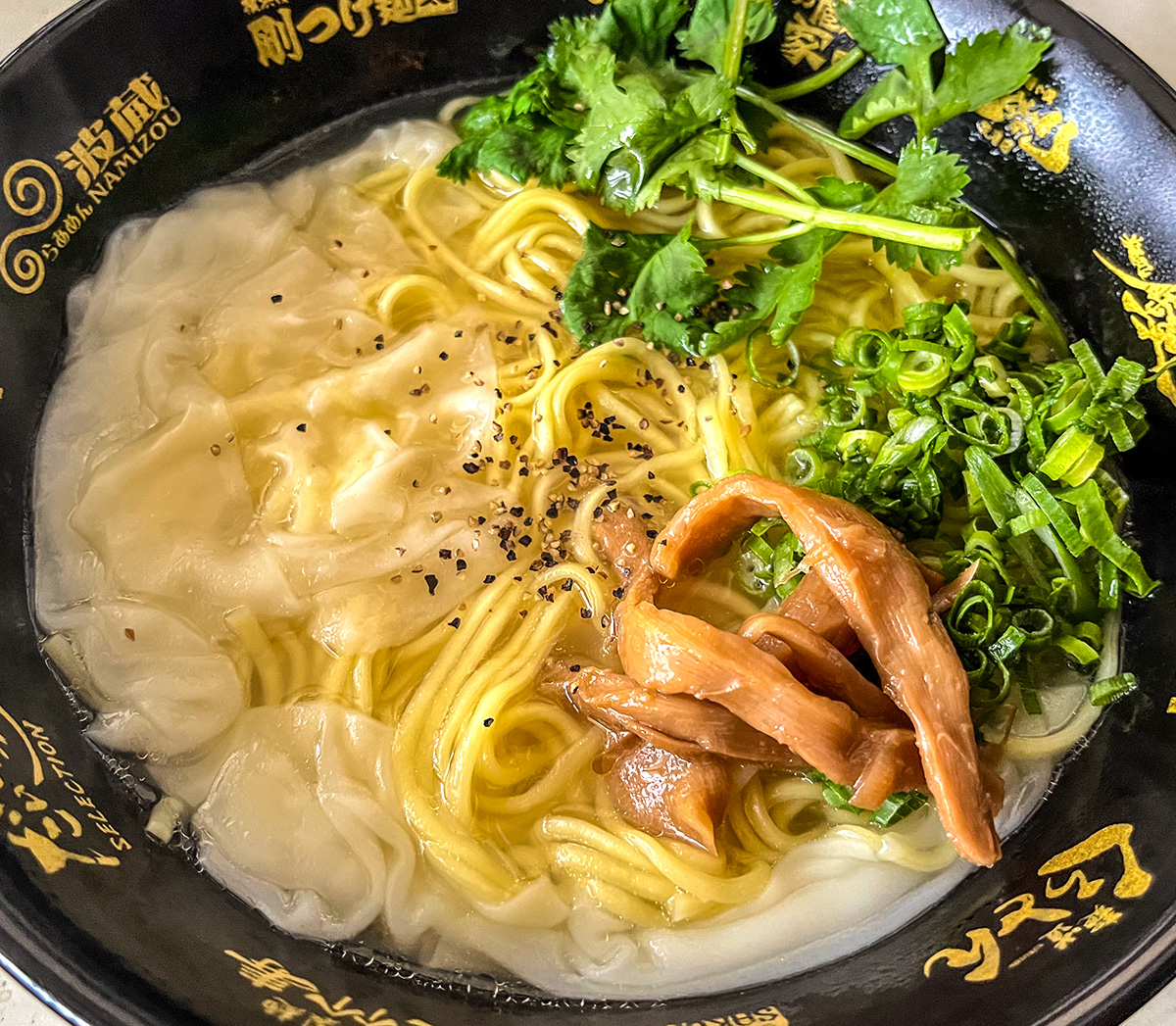 小ネギにメンマとパクチーにワンタンも加えてみた。