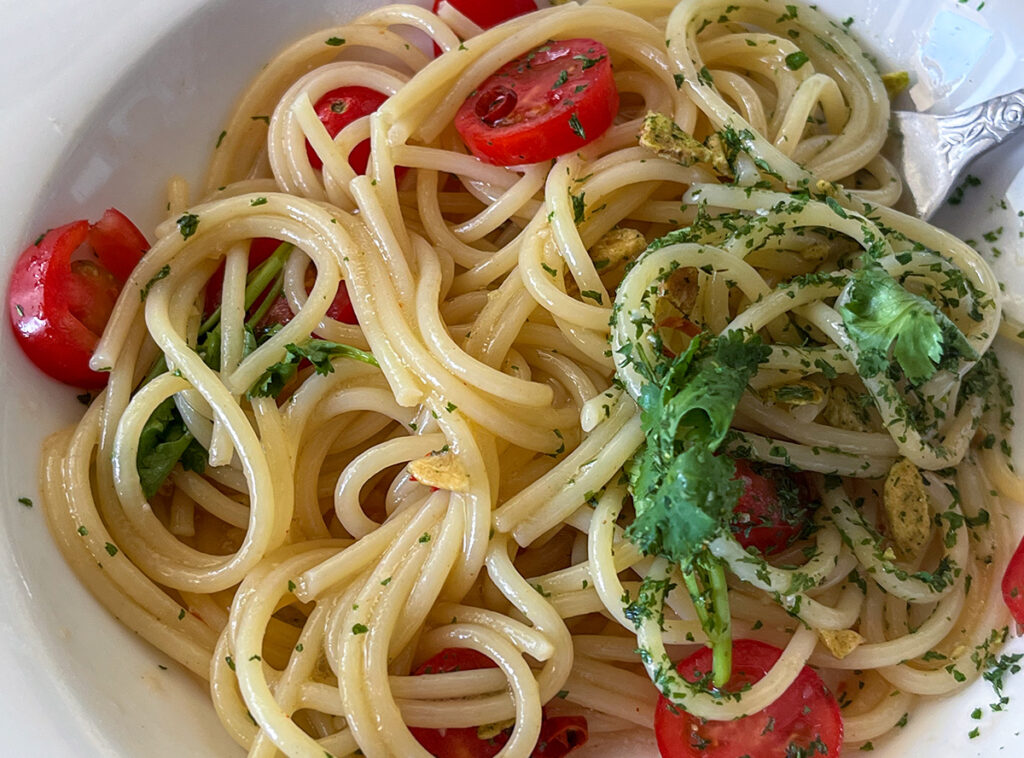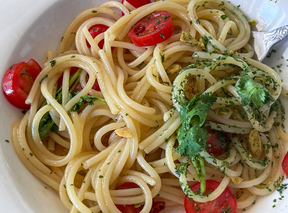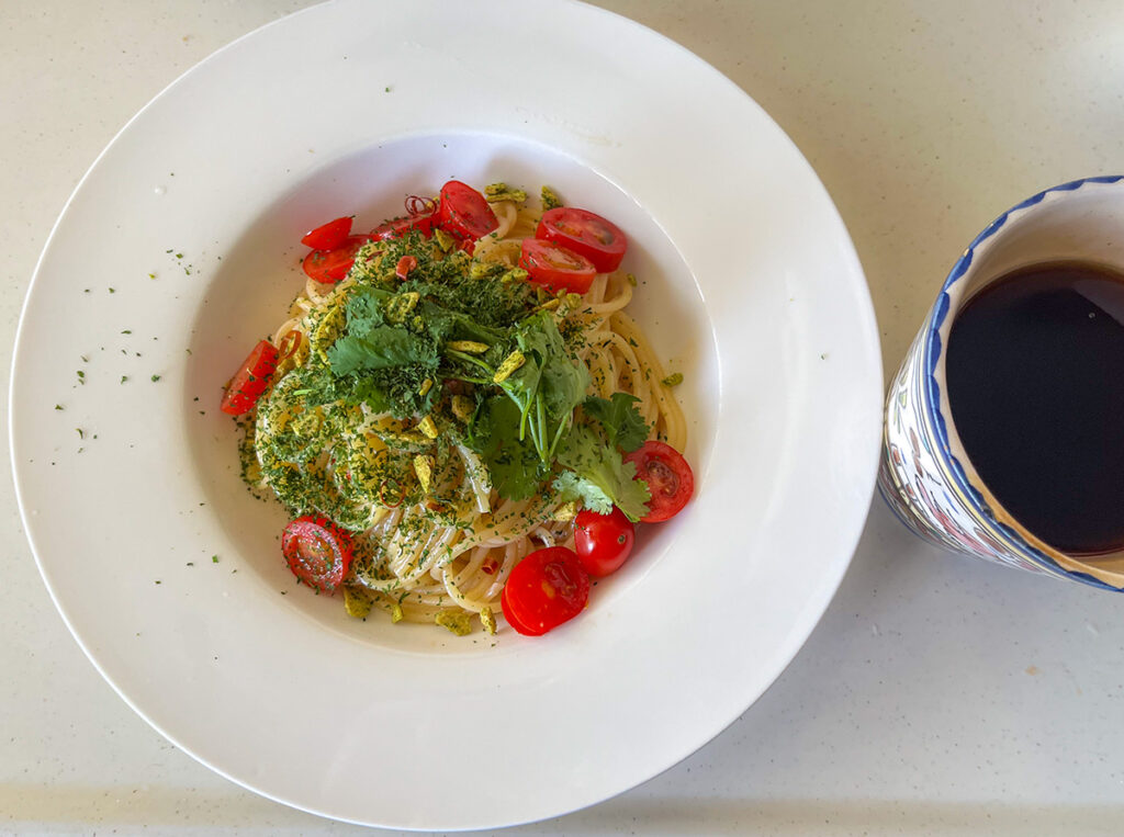昨日幸和農園で手に入れたフルーツトマトでペペロンチーノを作ってみた。