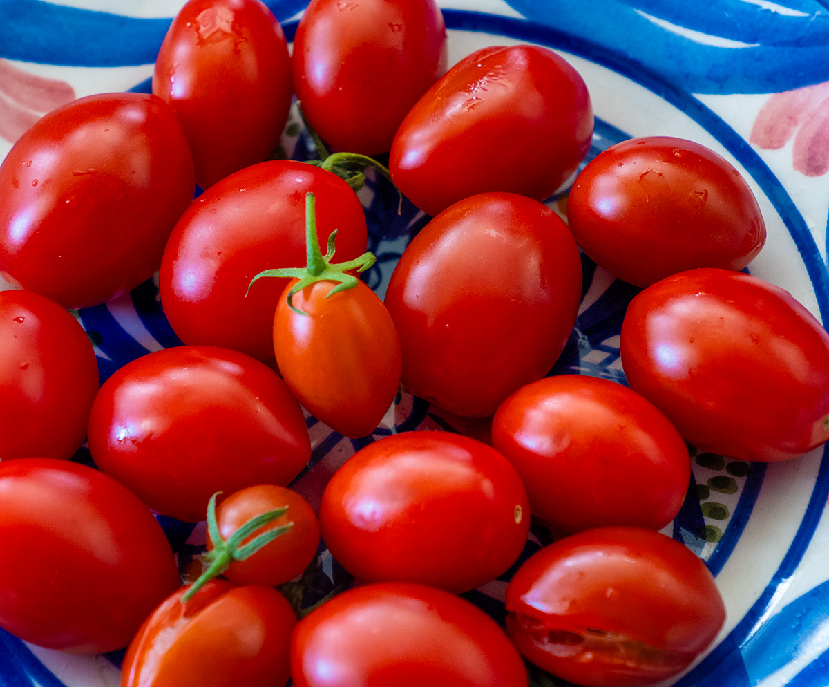 ペペロンのスパイシーさとフルーツトマトの甘味のコントラストがいい感じ。