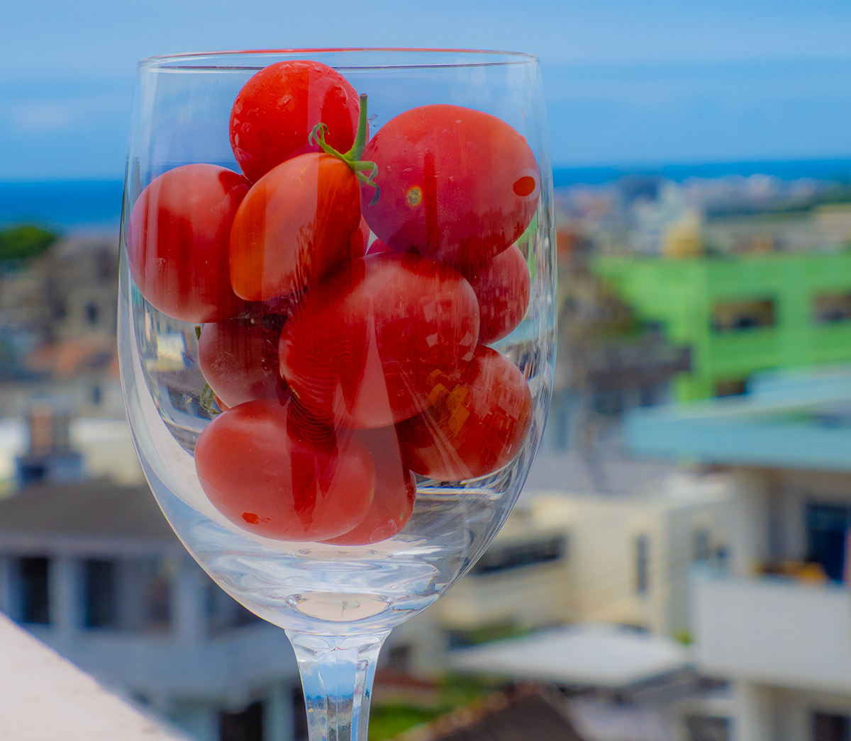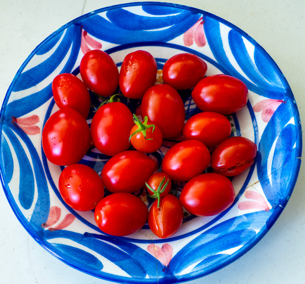 フルーツトマトをスライスしてパクチーとあわせてトッピングするだけ。