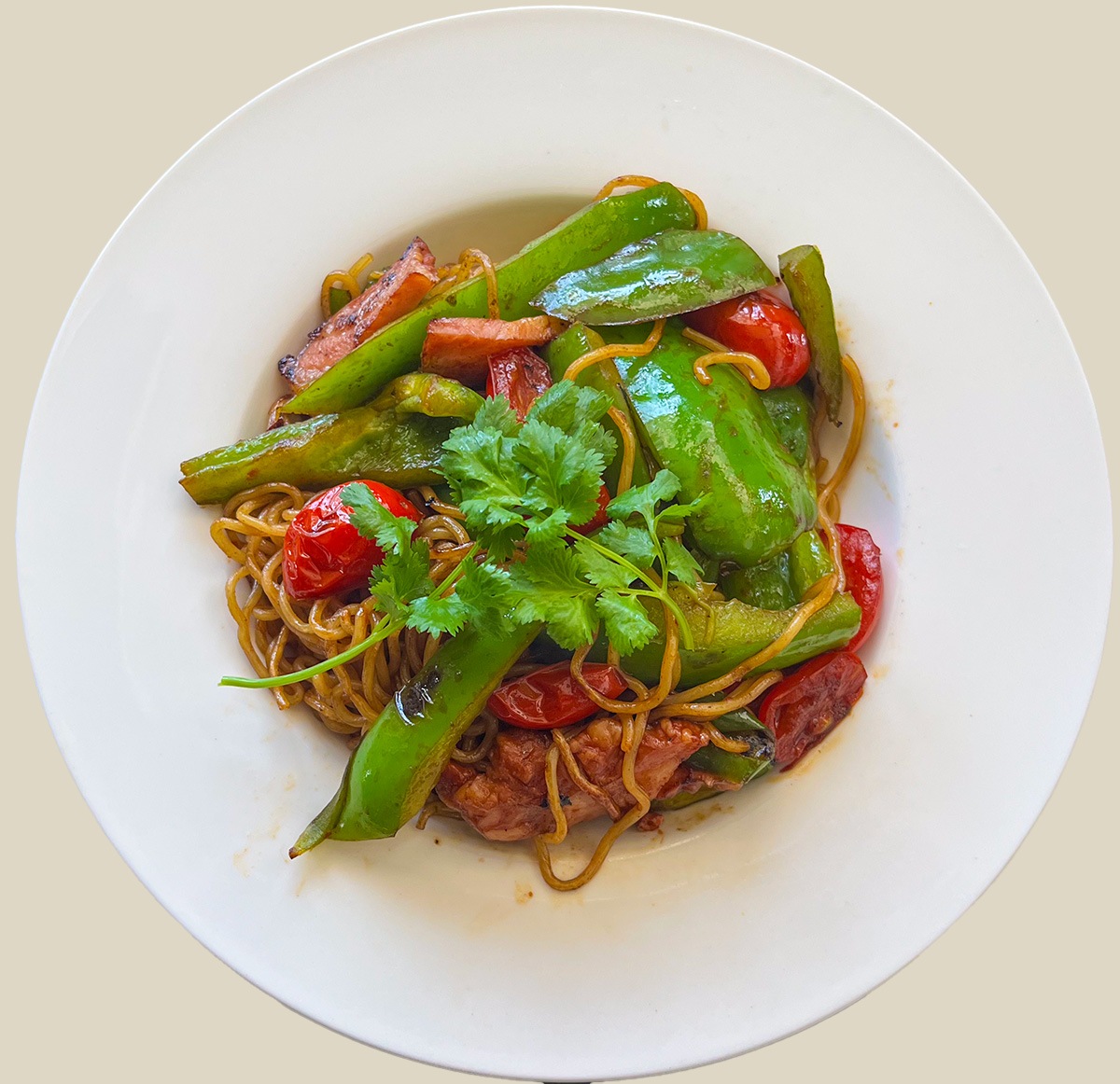 sep.16th tue. 2025 大きな焼きそばパプリカが冷蔵庫に余っていたのでソーセージでソース焼きそば。 焼きそばはまず麺をほぐさないで強火で片面を焼いたら、ひっくり返して動かさないでまた4分放置して焼くのが大事。 そしたら皿に取り出しておいて、ソーセージと赤ピーマンを焼く。 焼けたら麺をもどしてソースをかけて混ぜ合わせ。 最後にパクチーをトッピングして出来上がり。 香ばしくパプリカの甘さと食感があわさって美味い。 粉ソースの場合は、水と酒とみりんとオイスターソースにカツオ節とカレー粉をちょっぴり加えるとさらに美味いね。 赤ピーマンとパプリカってどう違うのかとも思うけど、これは大きく食感も違うのでパプリカでいいんだよな。 関連サイト:Facebook┃Twitter┃おきぐる┃Facebook┃Twitter┃おきぐる┃okinawaweb┃南風原タウン情報┃チーズ教室 ┃Okinawaweb Express┃mixi┃グシクムイ…