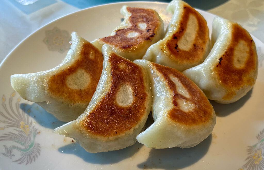 私は薄くパリッとした方が好みだけど、ここの皮が厚めでもちもちっとしているのは妻のお気に入りだ。
