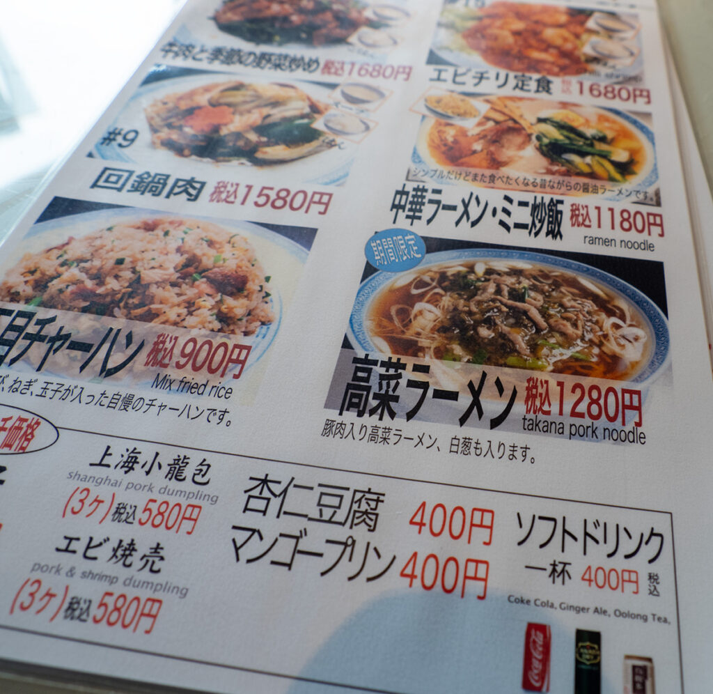 高菜ラーメンは1280円。