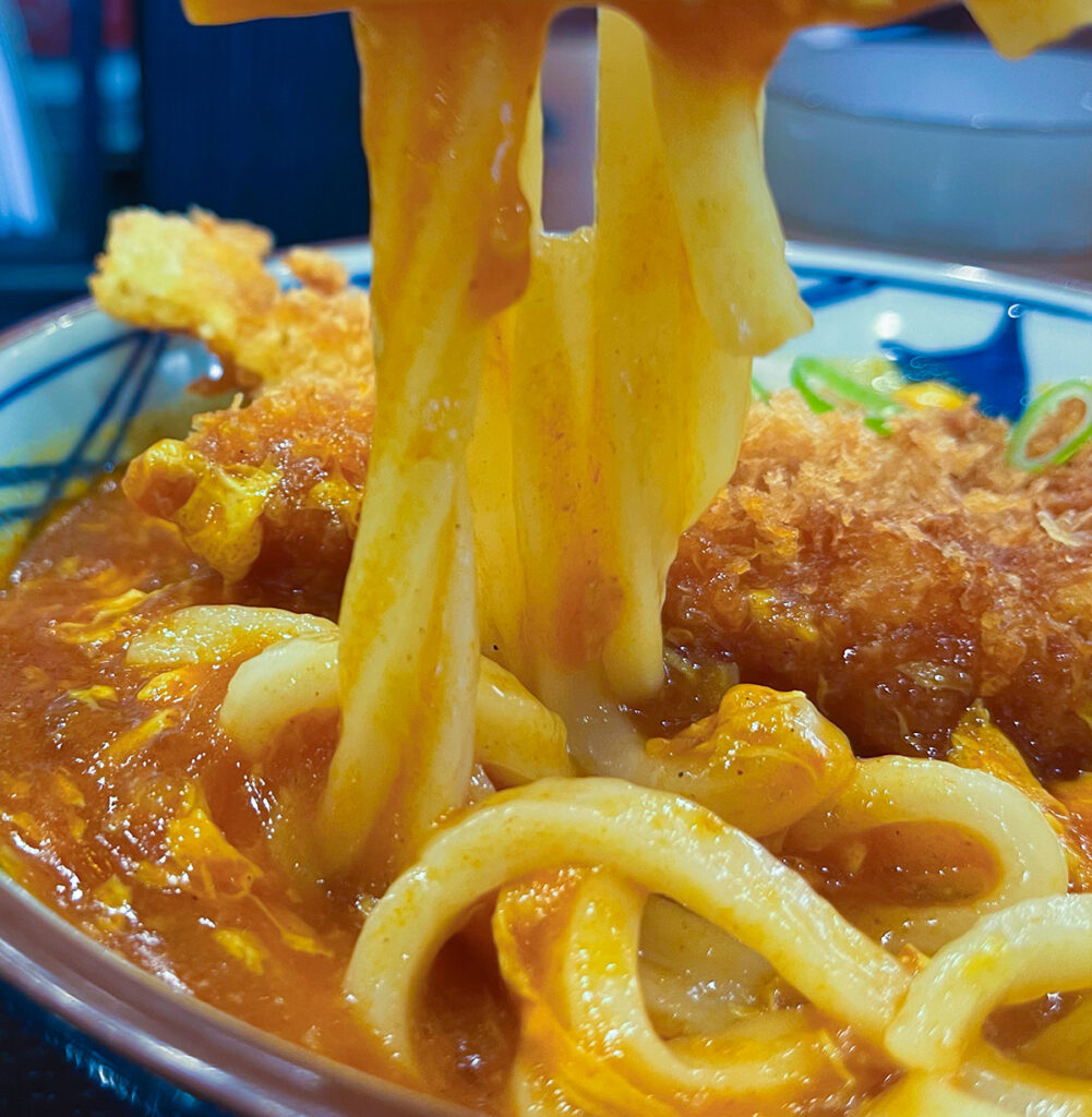 味はまぁまぁだけど、ちょっと甘いかな。スパイシーさもあるけど。うどんはコシもあってかみごたえもあるね。