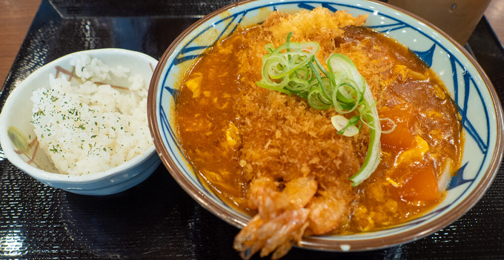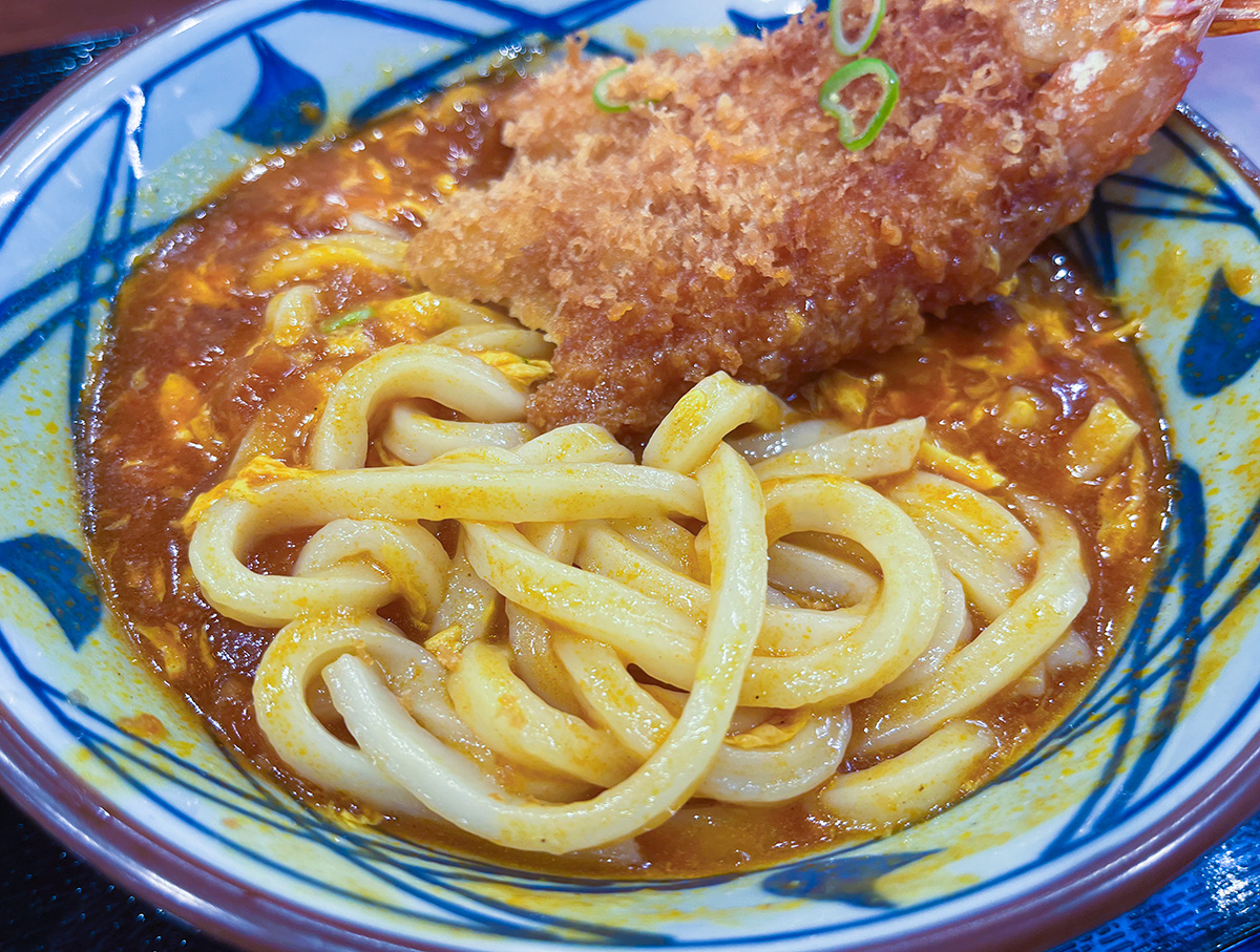 夕方テレビで宣伝していた丸亀の海老カツトマトカレーうどんを食べに。