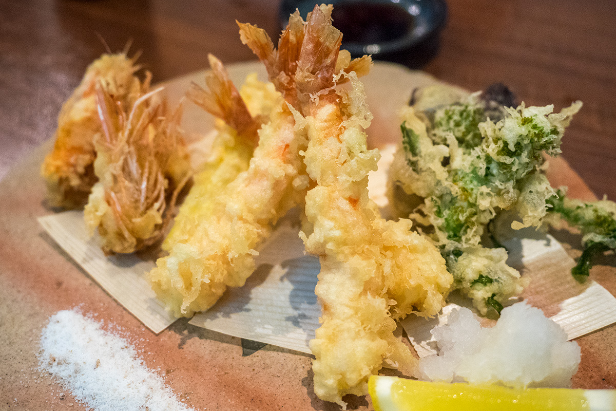 天使の海老の天ぷら。しっとりプリッと歯ざわりもよく美味い。