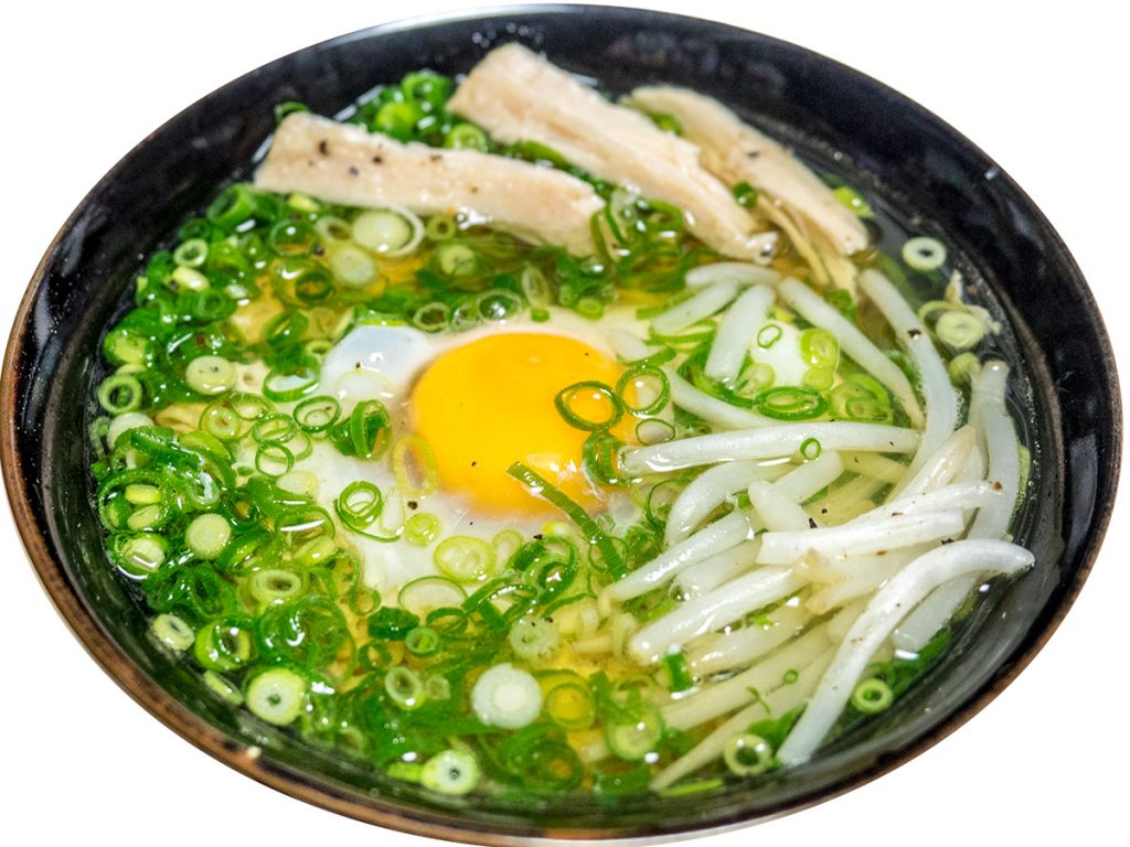 ネギたっぷりにもやしとファミマのサラダチキンに玉子もプラス。