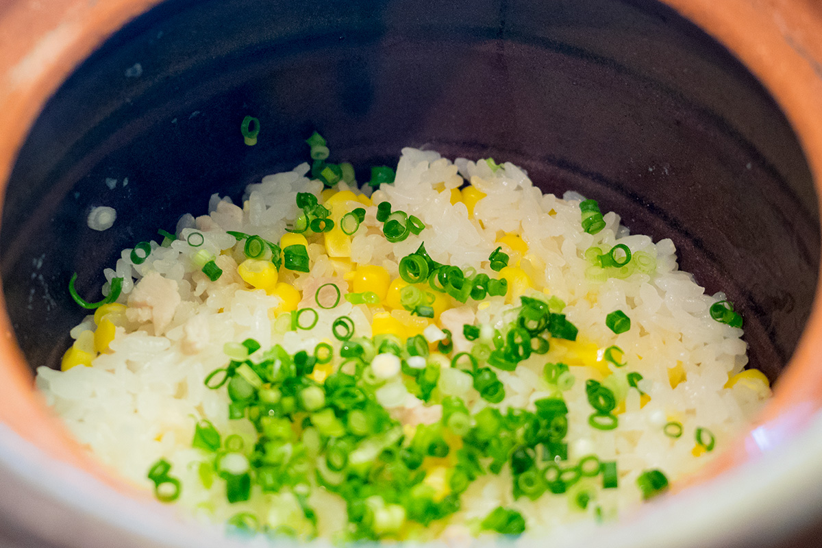 大きな土鍋に入ってでてきた。それを自分でお茶碗によそう。