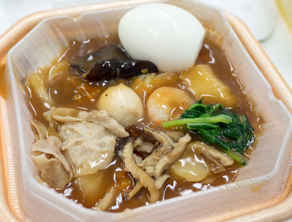思った以上に具沢山でこれで税込480円ならいいかも。ウズラもはいってるし。