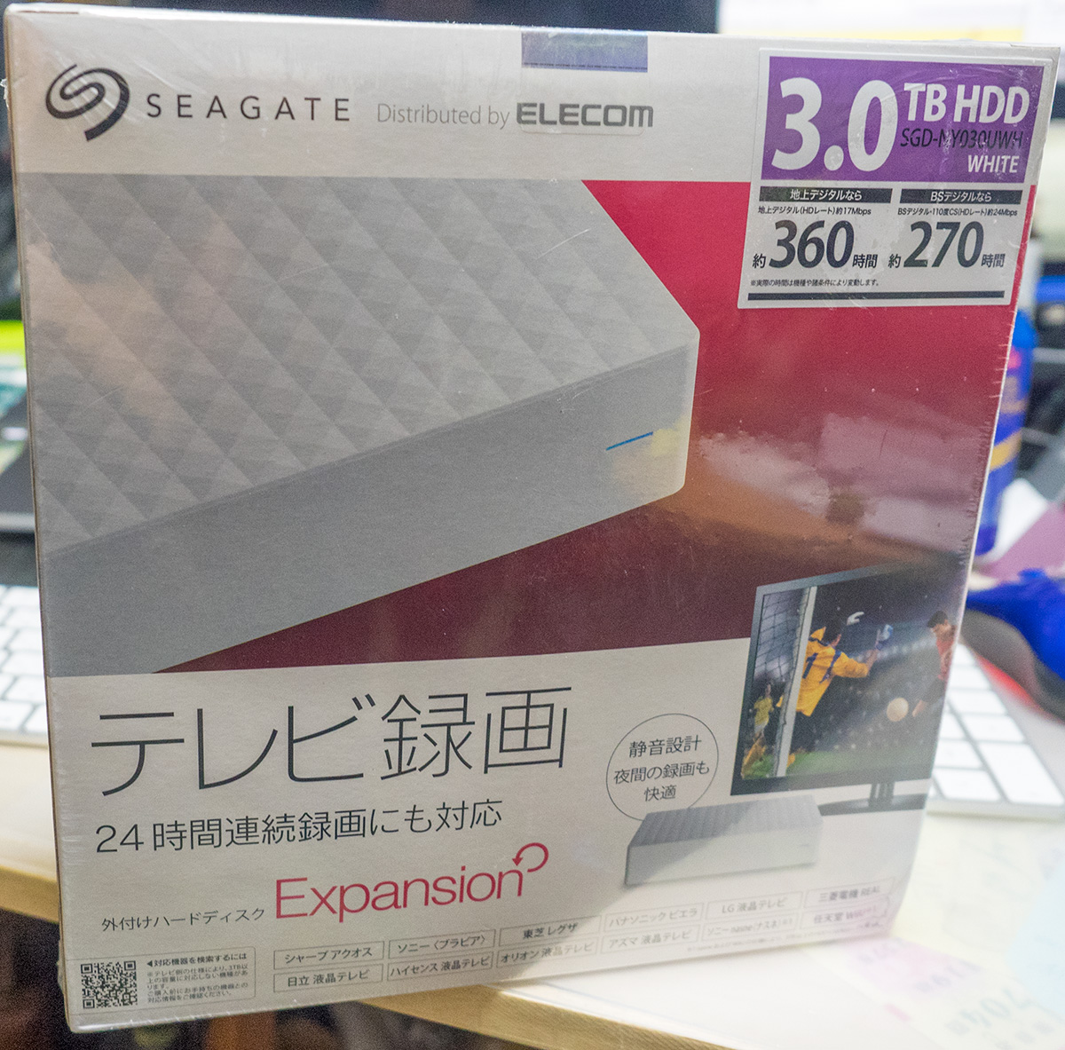 ちょっと売り場を見ていたら3Tのハードディスクが1.3万くらいだったのでひとつ予備で買ってみた。