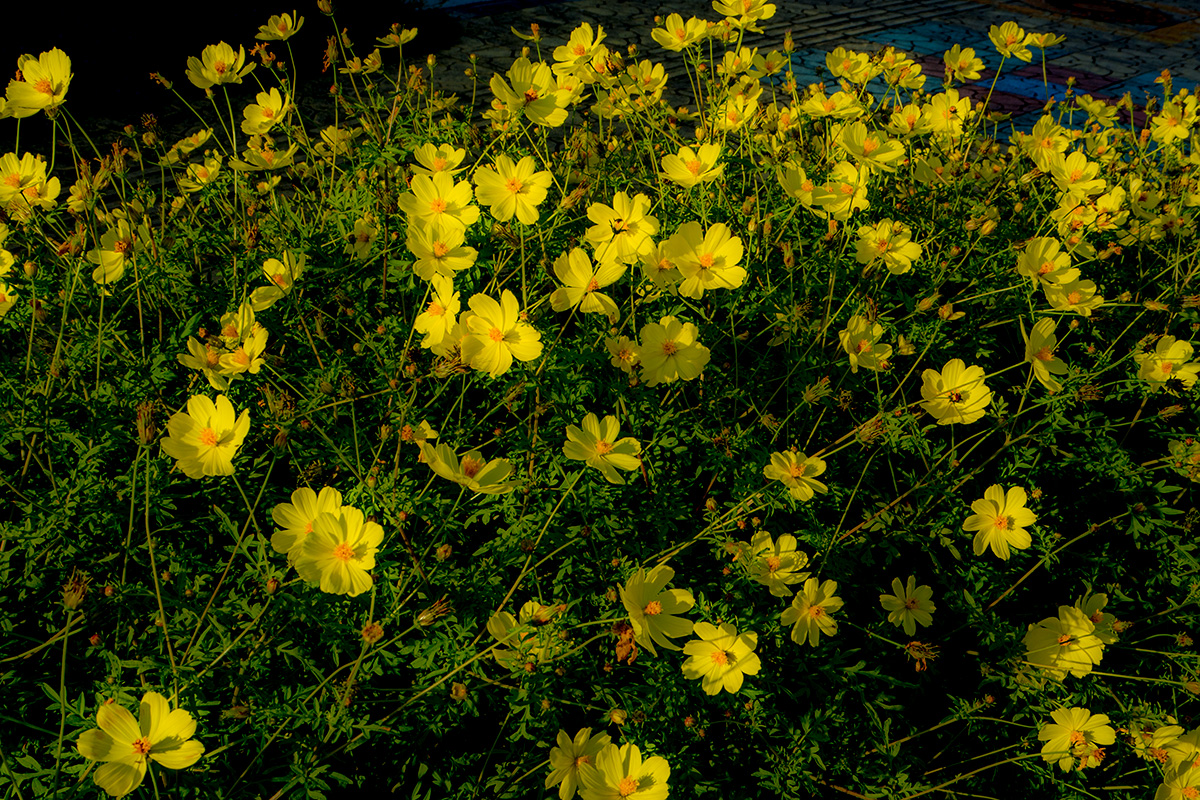 歩いていると色とりどりのランタナやナスタチウムもあちこちにある。