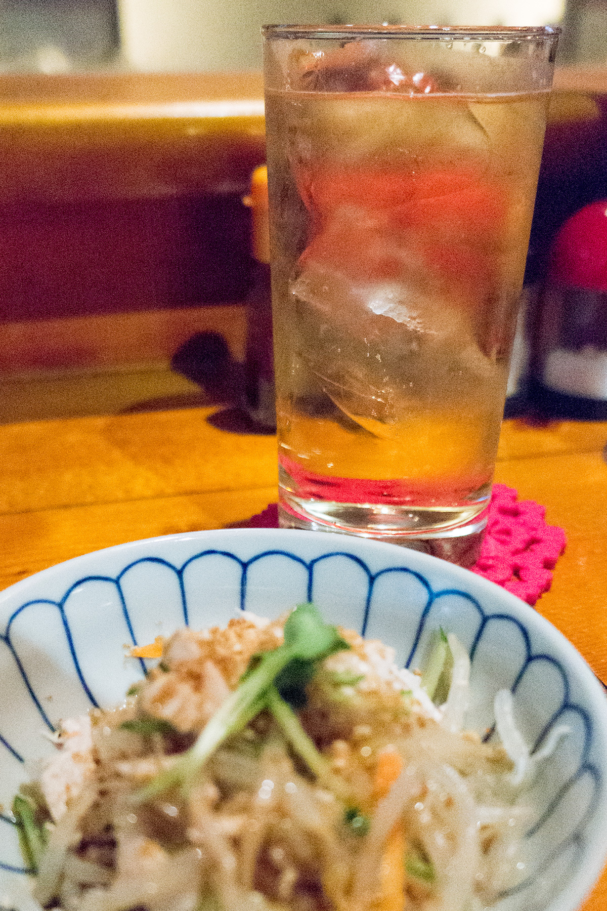 メニューは思ったよりずっと豊富だ。スープや小鉢2品のついた雲呑定食とかお得かなと思ったけど、おとなしく今回は焼きワンタンとハイボールに。