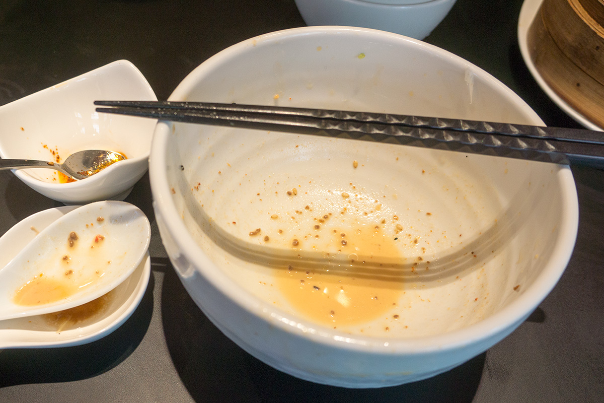 スープは甘くスッキリ。別皿にしてもらったマー油を加えるとピリピリ。