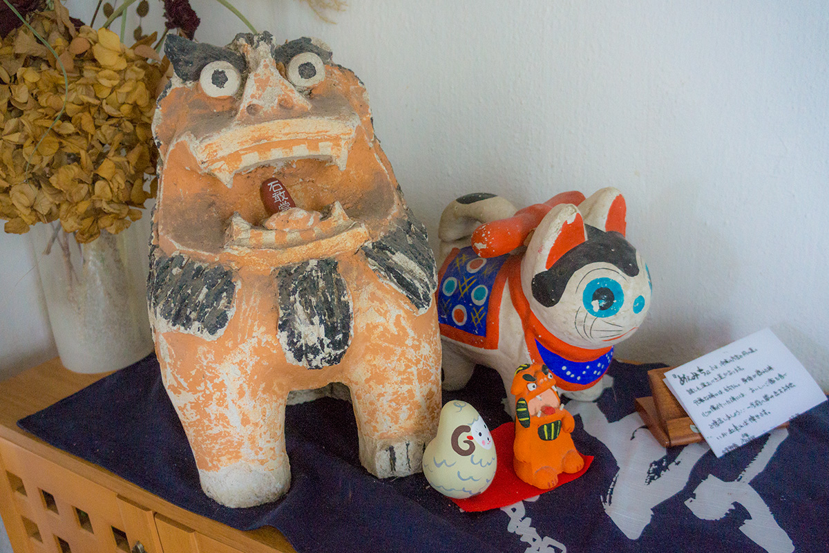 外では猫が、中にはいるとシーサーが出迎えてくれる。