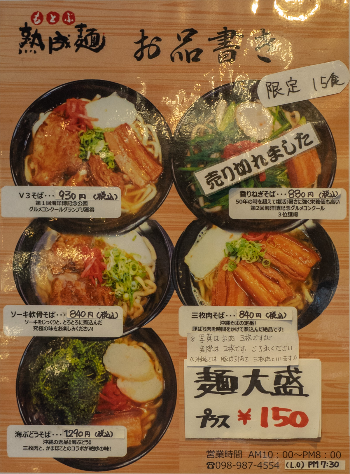 第1回海洋博記念公園グルメコンクールグランプリ優勝のV3そばにしてみよう。
