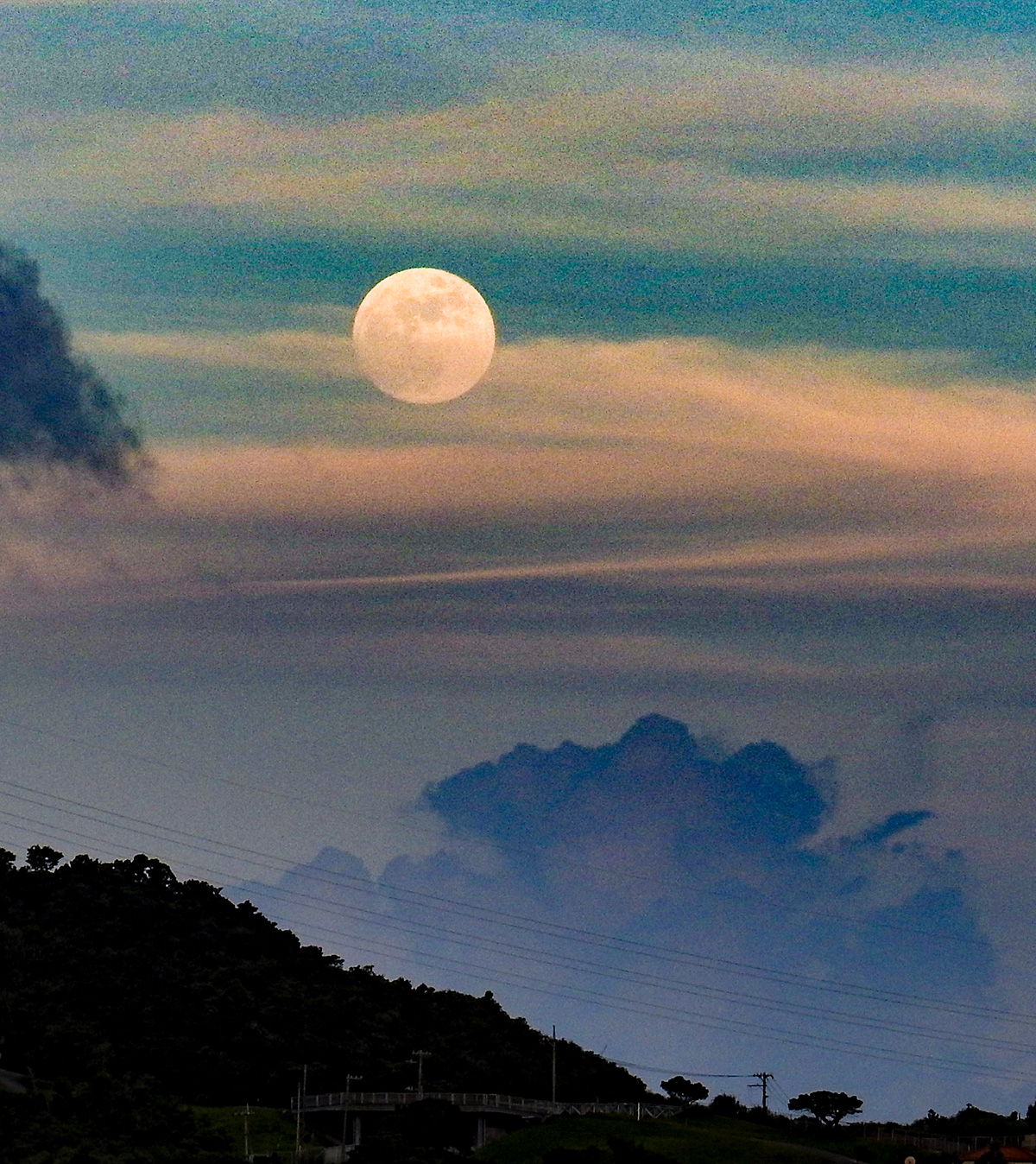 東の空には月が昇り始めた。月の出の瞬間は見えなかったけどね。