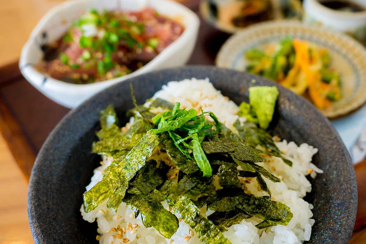 朝一で宮古に飛んでよろず支援拠点のサテライトでの相談のあとのランチは、隣にある宮古島ぜんざいと家めしの店 眞茶屋でマグロ漬け丼。