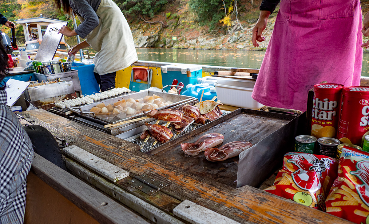 船に横付けになったのはおつまみ船。焼きイカやおでんやビールなどを売っている。