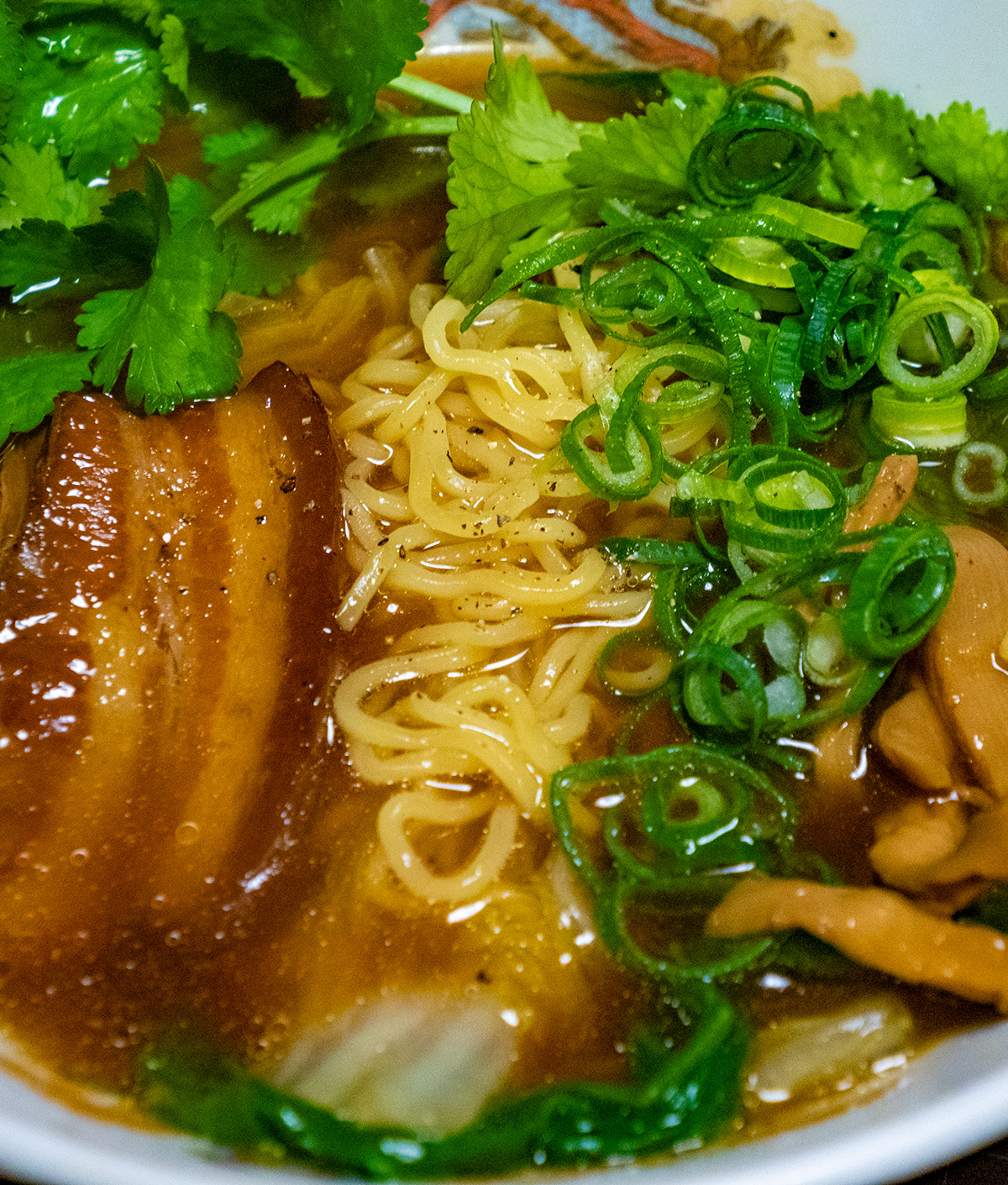 炙りラフテーにメンマと白菜に青ネギたっぷり。