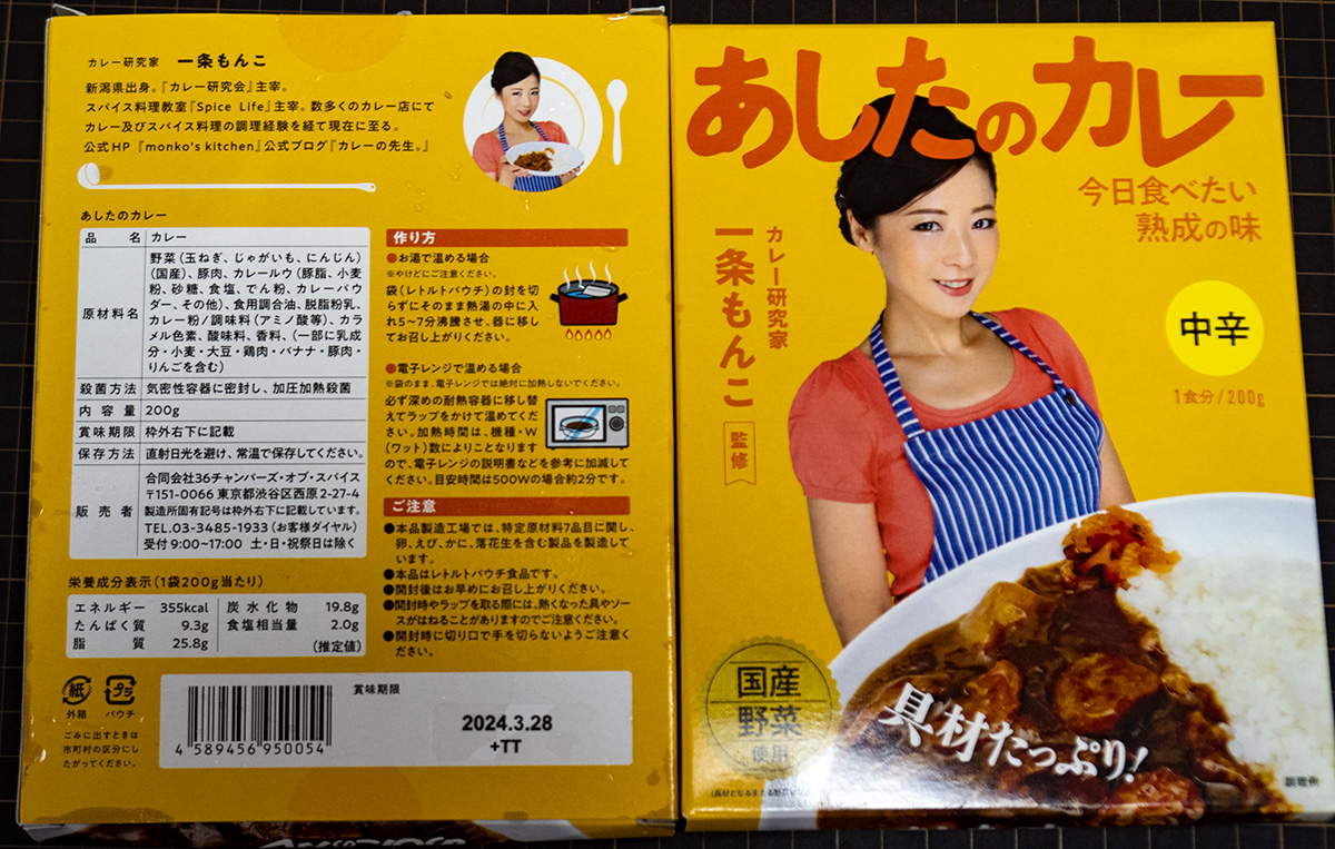 年間800皿のカレーを食べるほどのカレーマニアで、自宅には常に200個以上のレトルトカレーを山積みにストックし、扉が開かないほどに。カレー大學講師も努めるかたわら、数多くのカレー店にてカレー及びスパイス料理の調理経験を持つ。そんな一条が構想10年を費やした夢のオリジナルレトルトカレーってことで買ってみた。
