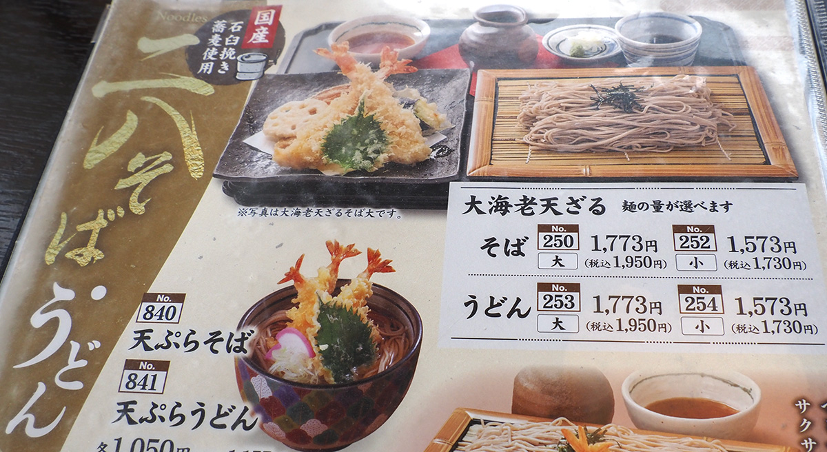 和風亭の大海老天ざる。小は1730円で大は1950円と,220円増しだから大にしてみた。 Continue reading